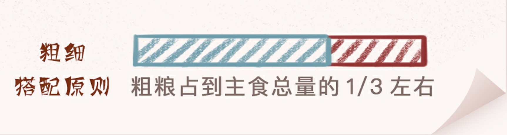 粗細搭配原則:在總熱量范圍內(nèi)計算好主食量,粗糧占到主食總量的1/3左右為佳。[2]