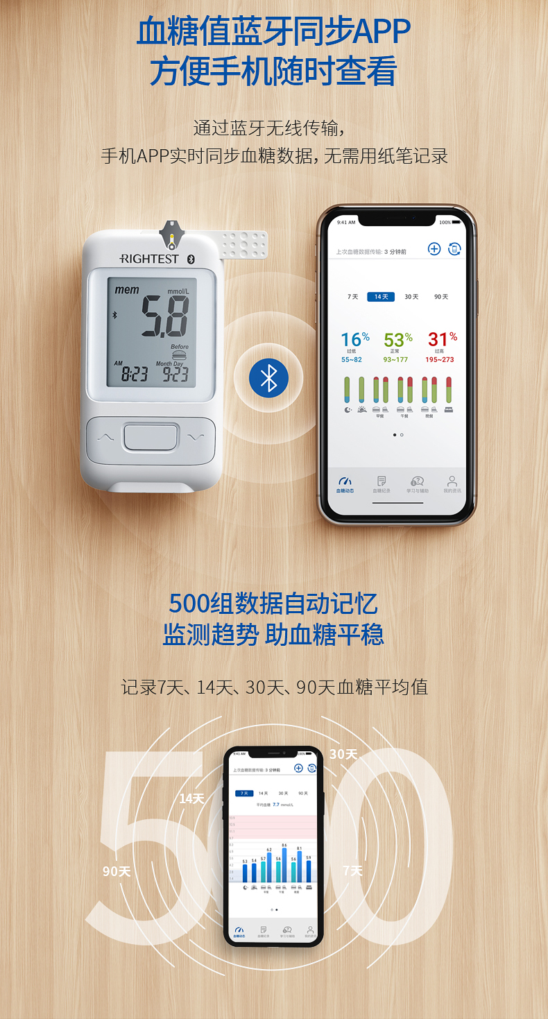 控制血糖的關(guān)鍵,在于智能監(jiān)測管理,糖友們可以使用瑞特血糖儀GM700SB智能藍牙血糖儀,可連接瑞特健康APP,長期監(jiān)測血糖趨勢、制定適合自己的飲食食譜,實現(xiàn)智能控糖,自在樂活。