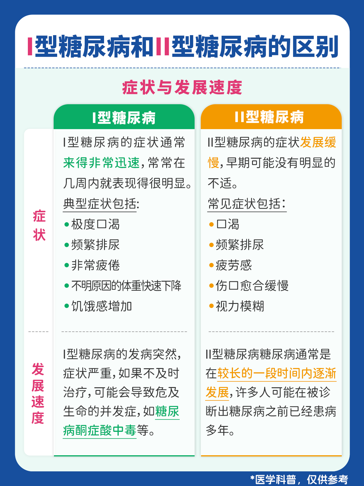 Ⅰ型糖尿病和Ⅱ型糖尿病的區(qū)別